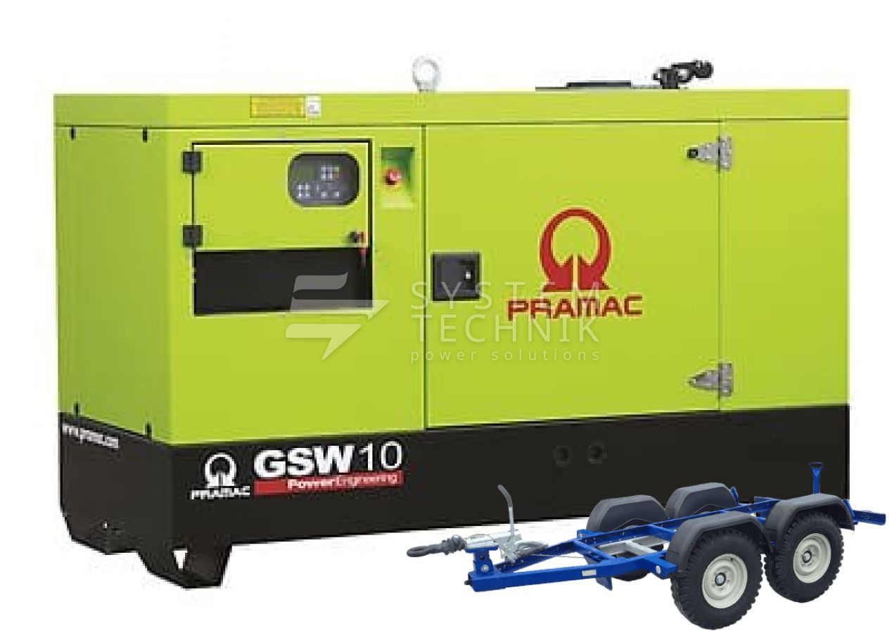 - Дизельный генератор Pramac GSW 10 P 230V В кожухе на прицепе