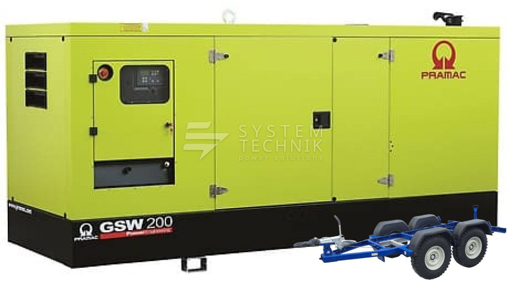 - Дизельный генератор Pramac GSW 200 P 380V В кожухе на прицепе