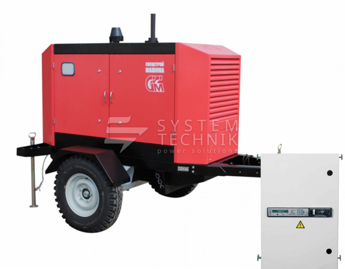 - ССМ ЭД-20-Т400-2РПМ1 в погодозащитном кожухе на шасси с АВР на прицепе