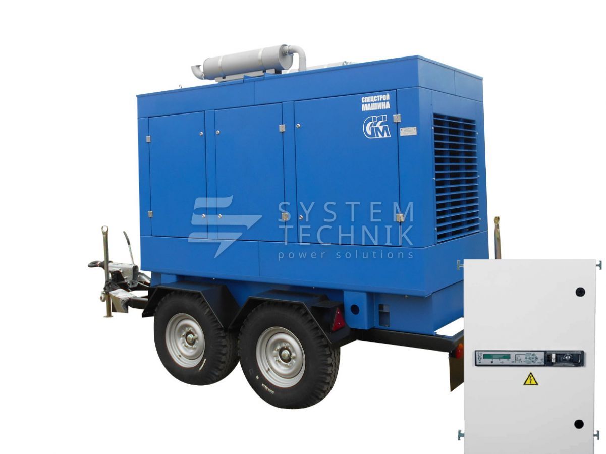 - ССМ ЭД-200-Т400-2РПМ2 в погодозащитном кожухе на шасси с АВР на прицепе