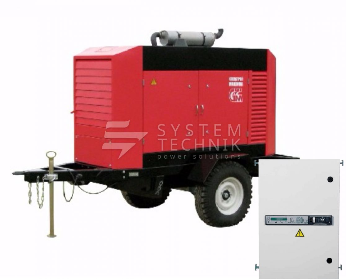 - ССМ ЭД-60-Т400-2РПМ1 в погодозащитном кожухе на шасси с АВР на прицепе