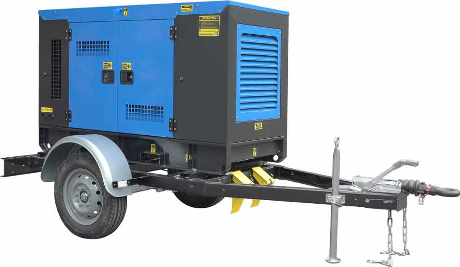 - ТСС ЭД-30-Т400-2РКМ1 в шумозащитном кожухе на прицепе с АВР